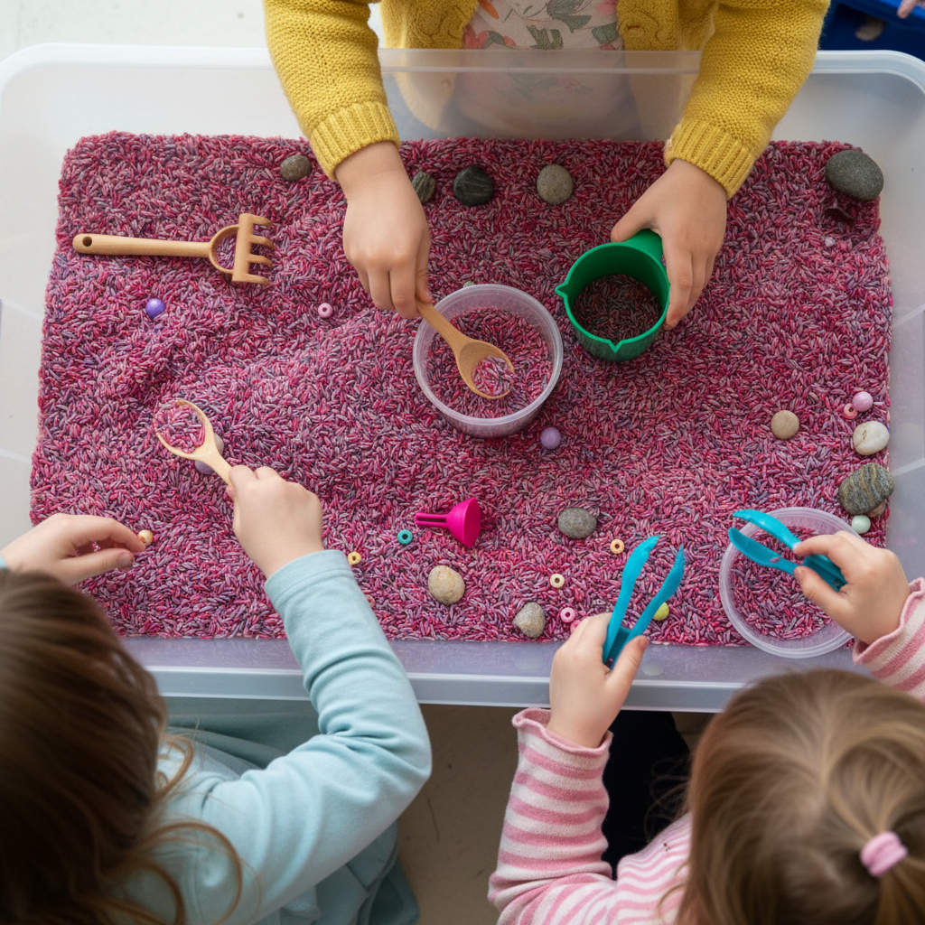 Sensoorne riis on värviline ja meeldiva tekstuuriga mängumaterjal, mis pakub lapsele põnevat avastamist ja loovmängu võimalust. Sobib ideaalselt sensoorse kasti täiteks, valamiseks, sorteerimiseks ja erinevateks rollimängudeks.